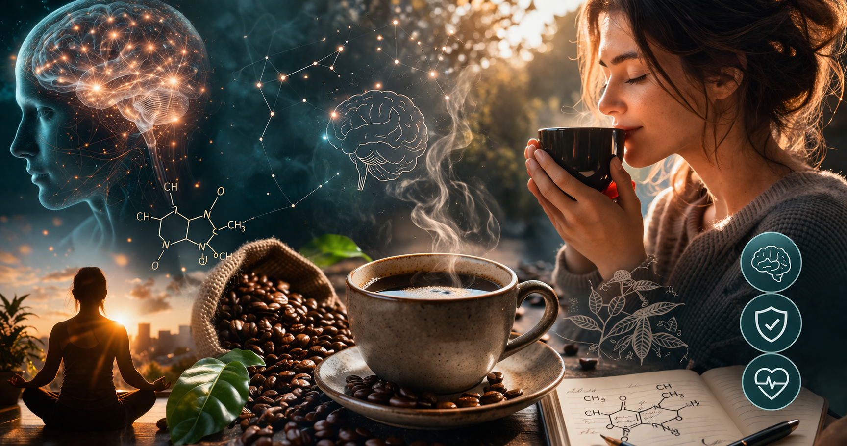 ცნობილია, რომ კოფეინი მრავალ ბიოაქტიურ ნივთიერებას შეიცავს. მკვლევრები ვარაუდობენ, რომ ზოგიერთ მათგანს შეიძლება ჰქონდეს დამამშვიდებელი და ანთების საწინააღმდეგო ეფექტი თავის ტვინის იმ სისტემებზე, რომლებიც განწყობასა და სტრესთანაა დაკავშირებული. წარსულში ჩატარებული კვლევებიც მიუთითებს, რომ მსგავსი მექანიზმები შეიძლება იცავდეს ტვინს სხვადასხვა დაავადებისგან.